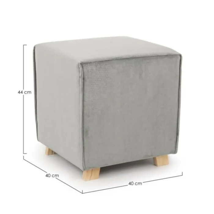 Tabure ADEL siva ima okvir iz borovega lesa in MDF-ja, oblečen je v poliester z žametnim učinkom.