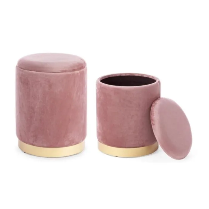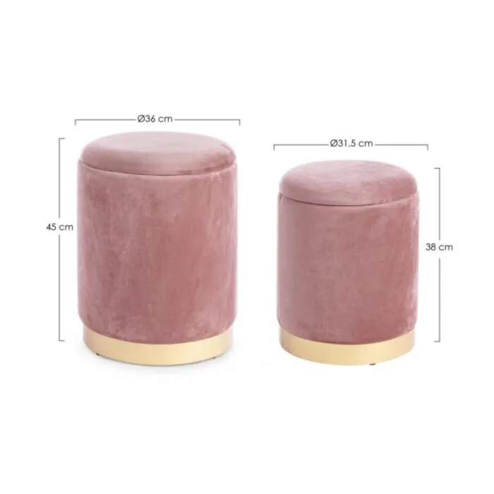 Ogrodje taburejev POLINA je narejeno iz MDFja in vezanih plošč. Prevleka je iz poliestra z žametnim učinkom. Dno ima kovinski okrasni obroč v zlatem videzu.