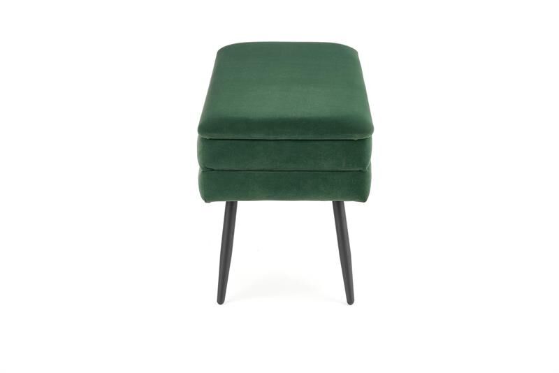 Tabure VILA je zelo eleganten in stabilen. Dobavljiv je v žametnem blagu v temno zeleni barvi ali pa v sivi barvi. Noge so iz kovine prašno barvane v črno barvo. Tbure ima snemljiv pokrov za shranjevanje.