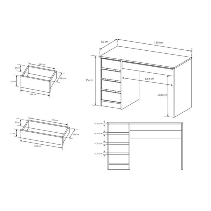 D: 120 cm x G: 55 cm x V: 75 cm