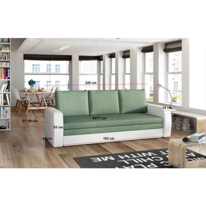 Eleganten trosed FILIP je primeren za vsak prostor. Trosed ima funkcijo ležišča, ter predal za posteljnino, tako da je primeren za sedenje in počitek.  Dobavljiv je v več barvnih kombinacijah blaga in umetnega usnja.