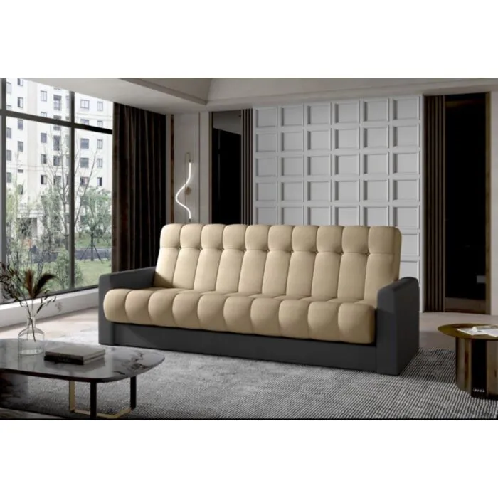 Posebej izbrane tkanine zagotavljajo popoln videz in moderen videz. Trosed ima prostoren predal, za shranjevanje različnih stvari, kot je posteljnina.