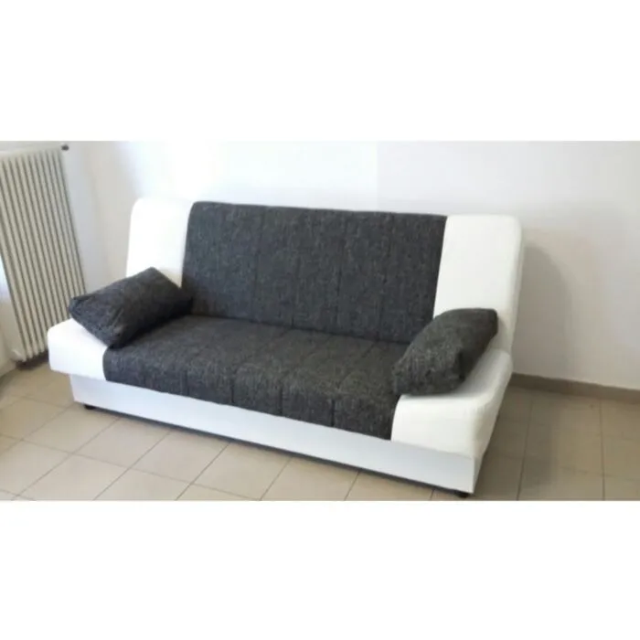 Trosed HAITI v belem umetnem usnju / črnem blagu je moderen in mladosten trosed, ki se raztegne v posteljo pod katero ima tudi predal za posteljnino.  Primeren je za vsak prostor, kjer potrebujete praktičnos in funkcionalnost. Dobavljiv je v barvi kot je na sliki.