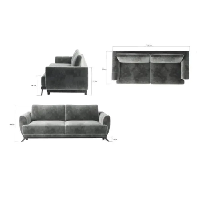 D: 250 cm x G: 95 cm x V: 90 cm
