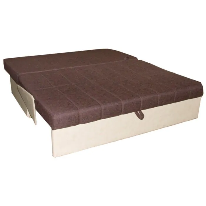 Trosed NEVA je primeren za vsak prostor, kjer potrebujete dodatno ležišče. Je zelo ekonomičen saj ga lahko v hipu raztegnete v ležišče in ravno tako zložite nazaj v trosed. S svojim dodatnim ležiščem nudi dodatno sprostitev in udobje. Narejen je iz trpežnega materiala, zgornji del in hrbtišče je iz blaga sivo – rjave barve, spodnji del pa iz belega umetnega usnja.