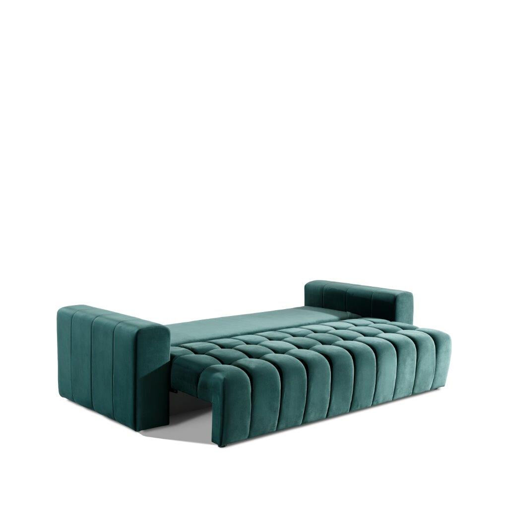 Enostavno ter hitro se spremeni v velik spalni del 195 x 125 cm s podoso za posteljnino. To funkcijo podpira DL avtomatski mehanizem. Prostorne blazine nudijo mehko podporo hrbtu in dajejo izjemno eleganten učinek. Visoki, mehki nasloni za roke zagotavljajo oporo, ko se usedete ali vstanete in ko se sprostite.