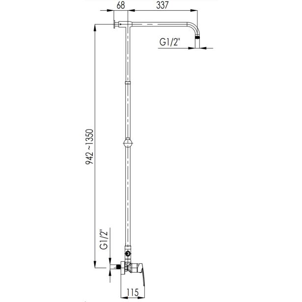 – V kompletu dobite tuš pipo, konzolo z okroglo tuš nadglavno tuš prho, gibljivo cevjo za tuš ročko in ročko tersistem za pritdritev na steno.