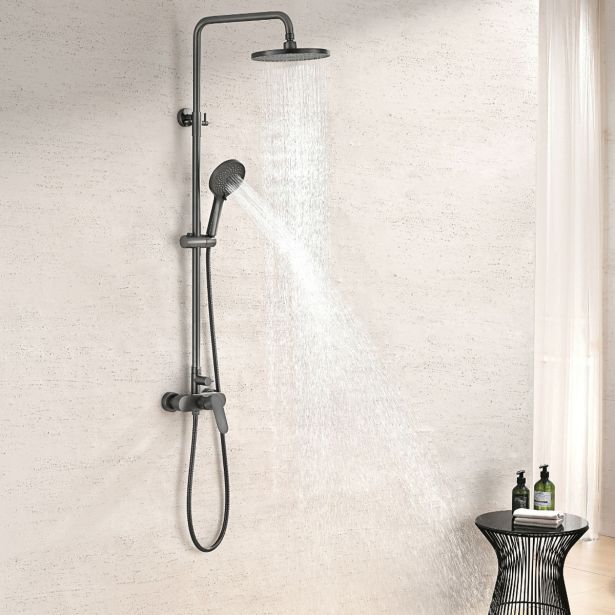 INTER CERAMIC TUŠ SISTEM S TUŠ ROČKO Z 1 FUNKCIJO IN TUŠ PALICO S 5 FUNKCIJAMI NERJAVEČE JEKLO SS304 GUN GREY
