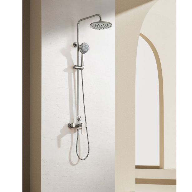 Tuš sistem iz nerjavečega jekla SS304 v elegantni mat srebrni barvi je zasnovan tako, da v vašo kopalnico vnese prefinjenost in funkcionalnost. Z dimenzijami 20×12,2×138,4 cm odlično združuje estetiko in praktičnost. Enofunkcijska ročna prha zagotavlja širok, osvežujoč curek vode, ki zagotavlja udobno prhanje, medtem ko pršna cev s petimi funkcijami ponuja vsestranskost in osebno izkušnjo, ki vam omogoča izbiro med nežnim, razpršenim pršenjem ali močnim, masažnim pršenjem za popoln užitek. Ta tuš sistem, izdelan iz vrhunskega nerjavečega jekla SS304, zagotavlja vzdržljivost in odpornost proti koroziji, zaradi česar je izjemno vzdržljiv tudi v pogojih visoke vlažnosti. Zahvaljujoč enostavnemu vzdrževanju in modernemu dizajnu, mat srebrna površina v vsak prostor vnese pridih razkošja. Poleg izjemne funkcionalnosti ta pršni sistem ne le prihrani čas in energijo, ampak je tudi izjemno učinkovit, zaradi česar je vsakodnevno tuširanje užitek na povsem novi ravni.