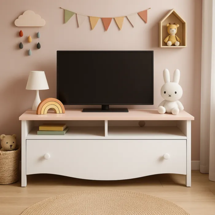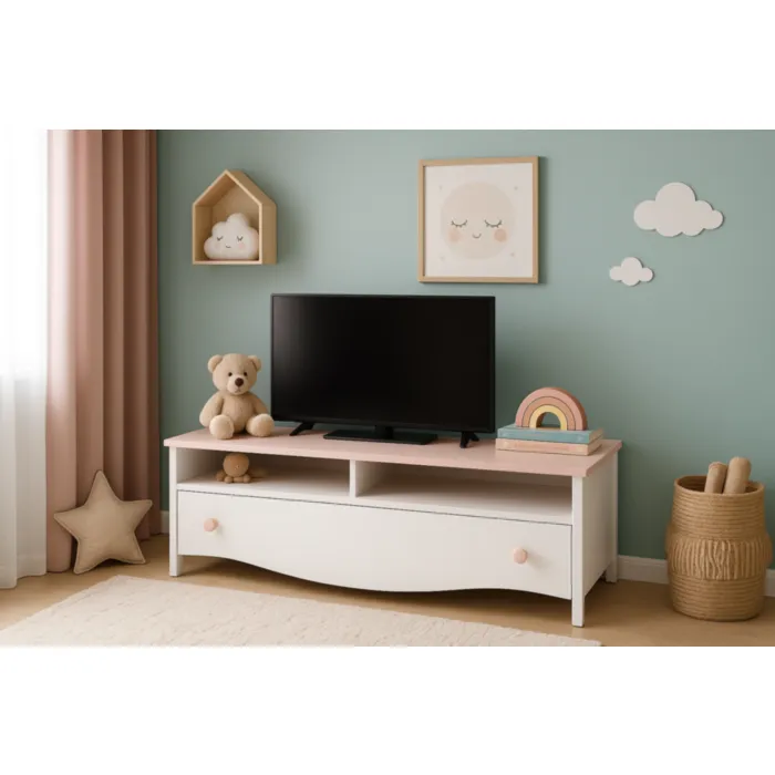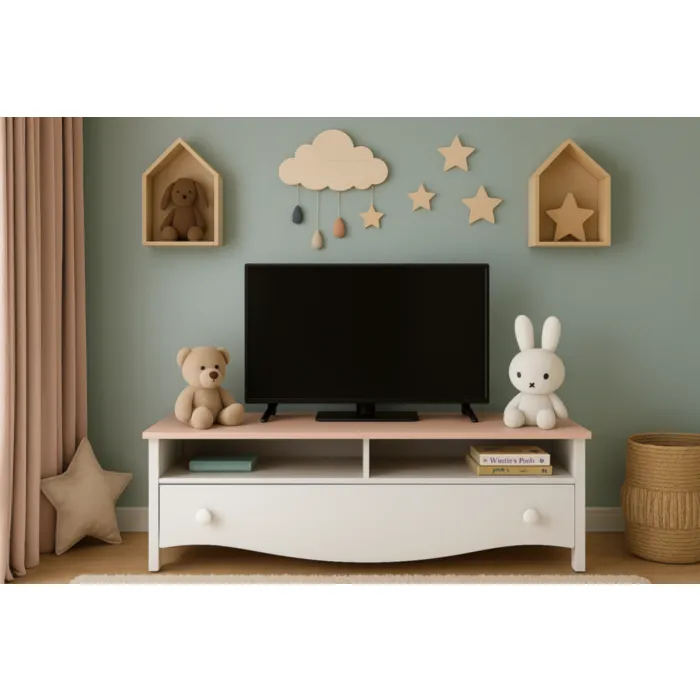 TV komoda BELLA je primerna za vsako dnevno sobo. Je nežnega, a elegantnega izgleda. Čiste linije in sodobna barvna kombinacija omogočata enostavno usklajevanje z ostalim pohištvom iz iste serije. Zaradi svoje oblike in visokokakovostnih materialov je trpežna in vzdržljiva. Odporna je na praske, udarce in obrabo. Je enostavna za vzdrževanje, saj je površina preprosta za čiščenje in negovanje. Estetsko se poda v vsak prostor ter ima dobro odpornost na madeže in vlago.