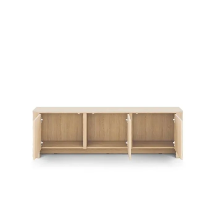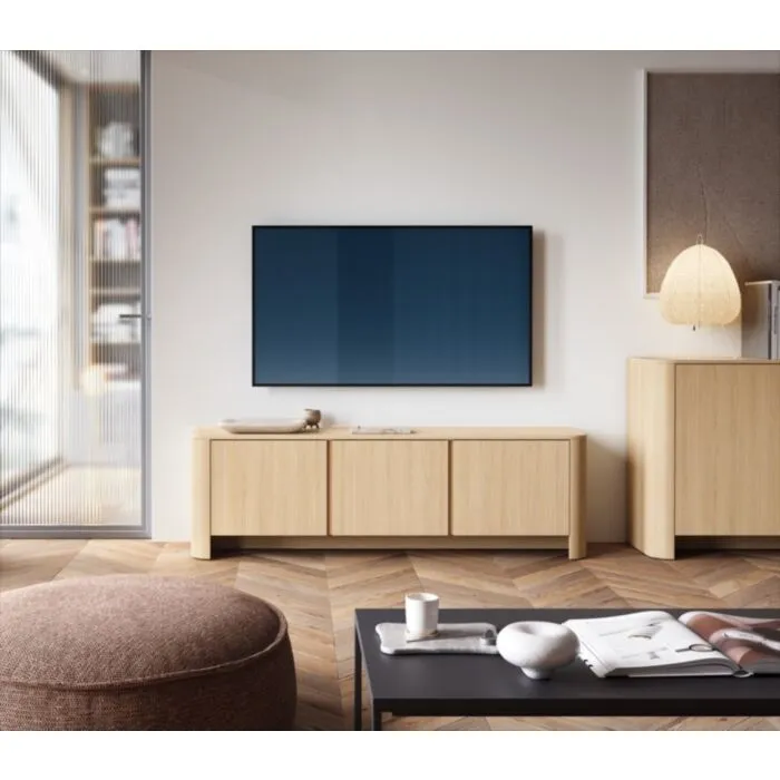Estetsko se poda v vsak prostor ter ima dobro odpornost na madeže in vlago. Ima ABS robove, ki zagotavljajo večjo odpornost proti udarcem, vlagi in obrabi ter podaljšujejo njeno življenjsko dobo. ABS robovi ne le ščitijo pred poškodbami, ampak poskrbijo tudi za lepši in elegantnejši videz pohištva. Dodatna prednost TV omarice je njena prostornost, vanjo lahko spravite veliko stvari in s tem poskrbiste za dodatno organizacijo in urejenost. Ima sistem odpiranja “PUSH TO OPEN”, kar zagotavlja enostavno odpiranje in zapiranje omarice, brez da bi imela nepotrebne ročaje.