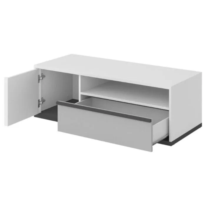 TV omarica MELI je primerna za vsako dnevno sobo. Ima moderne linije in eleganten izgled. Ima eno polico, en predal ter ena vrata.