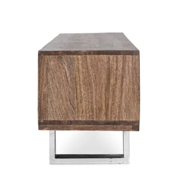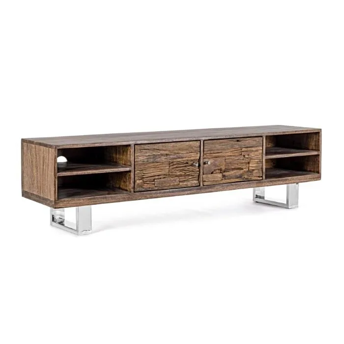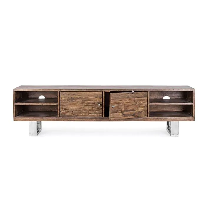 TV regal 2A STANTON ima okvir iz lesa in noge iz nerjavečega jekla.