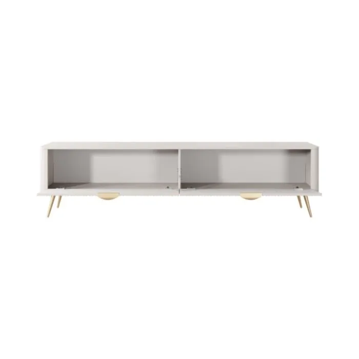TV regal LILJA 2, je eleganten kos pohištva, ki popestri vaš prostor s svojim luksuznim dizajnom. Narejen je iz kakovostnih materialov v barvi beige. Izdelan je iz MDF-ja in ABS robov. Ima kovinske ročaje in nogice v zlati barvi.