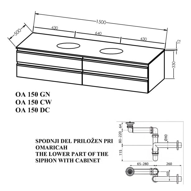 Dimenzije omarice: 1500 x 330 x 500 mm.