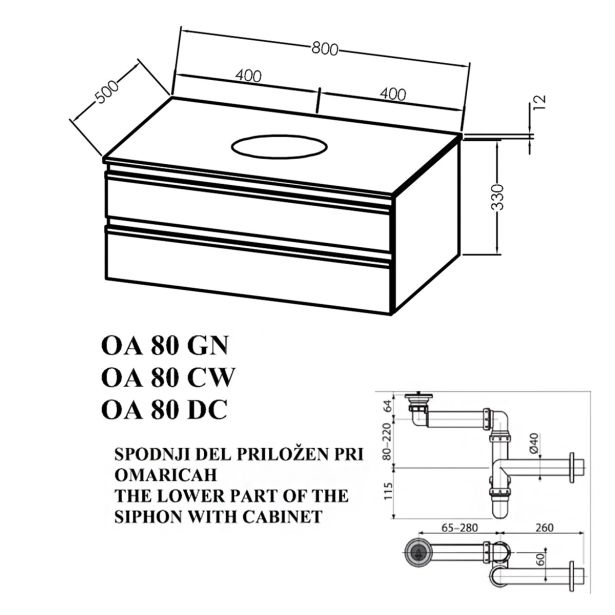 Dimenzije omarice: 800 x 330 x 500 mm.