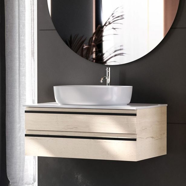 Kopalniška elegantna linija Alexis je vrhunski slovenski dizajn. Kolpa San OA 80 CW v barvi naravnega lesa, je izjemno praktična in estetska omara. Ohišje je oblikovano iz trpežnih laminiranih plošč (LTD) iz rafinirane iverne plošče, medtem ko je sprednji del predalov izdelan iz plošče (MDF), prekrite s 3D folijo v enaki barvi kot telo, kar ustvarja harmoničen videz. ter edinstven material Kerrock zagotavljajo trajnost in enostavno vzdrževanje.