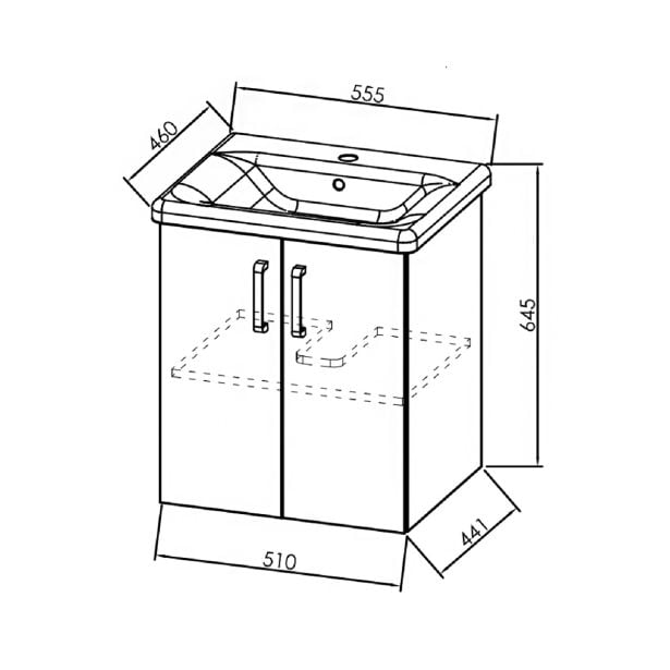 Keramično pomivalno korito, ki se elegantno vključuje v zgornji del omare, ne le izboljšuje funkcionalnost, ampak tudi dopolnjuje estetiko kopalniške opreme. Aluminijasti ročaji na vratih zagotavljajo enostavno odpiranje in zapiranje ter hkrati pripomorejo k sodobnemu videzu. Poseben tečajni mehanizem omogoča počasno in tiho zapiranje vrat, kar prispeva k udobju uporabe in preprečuje moteče hrupne zvoke. Omara je na voljo v beli barvi.
