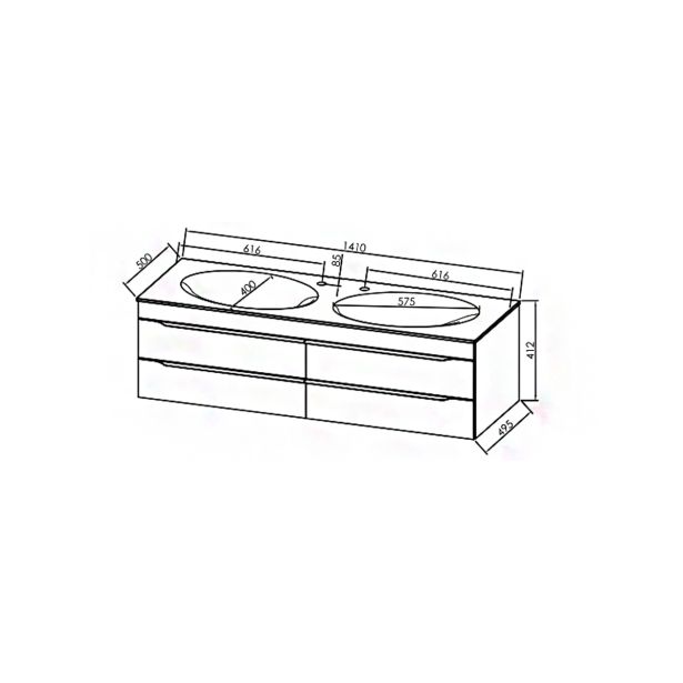 Dimenzije: Širina 1410 mm, Višina 412 mm, Globina 500 mm.