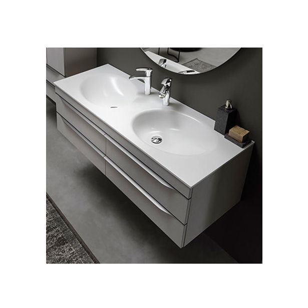 Kopalniška komoda z vgrajenim dvojnim umivalnikom MALAYA podjetja KOLPA-SAN, v širini 1410 mm, predstavlja vrhunsko kombinacijo estetike, funkcionalnosti in kakovosti.