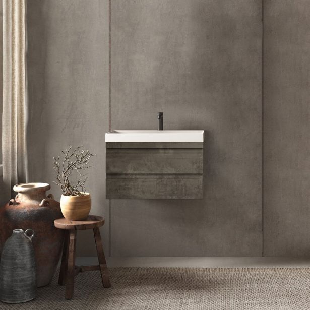 Kopalniška omarica z umivalnikom Kolpa san OUN 70 DC iz linije Naomi je izdelana v barvi temnega betona. Kopalniška omarica se montira na steno. Dimenzija visoke kopalniške omarice ( Š x V x G) 700 x 435+60 x 450 mm.