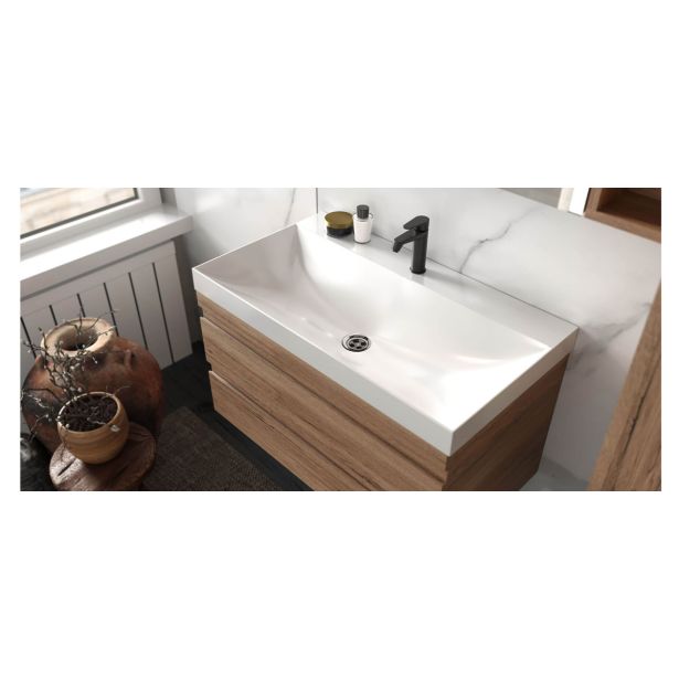 Omarica je izdelana iz kakovostnega materiala, umivalnik pa iz litega marmorja. Pod umivalnikom sta dva predala, ki imata funkcijo mehkega zapiranja.