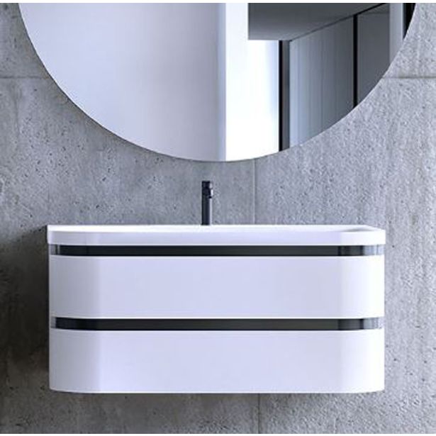 Sestavni deli omare sta dva izjemno prostorna kovinska predala, ki omogočata učinkovito shranjevanje kopalniških potrebščin. Ročaji so elegantno vgrajeni v pohištvo, in omogočajo, da se predali zapirajo v popolni tišini s pomočjo posebnega sistema.