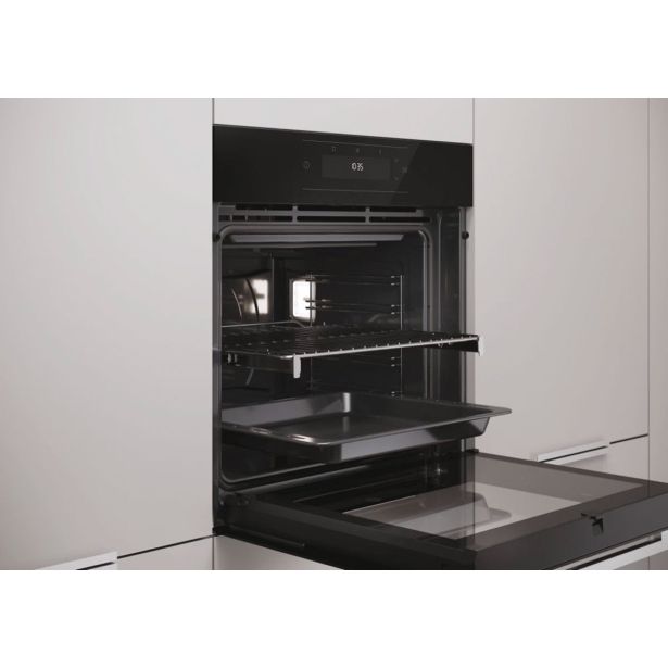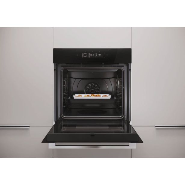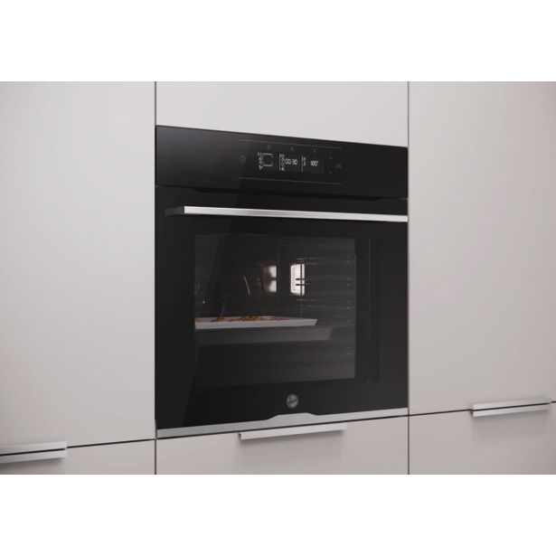 Vgradna pečica ima prostornino 70 l in spada v energijski razred A+. Njena velika notranjost omogoča hkratno pečenje na več nivojih. Teleskopska vodila olajšujejo vstavljanje jedi, jemanje iz pečice in dodajanje začimb med pečenjem. Na voljo ima 11 načinov delovanja in sistem čiščenja s pirolizo ali paro. Upravljanje je enostavno preko preglednega zaslona na dotik. Krožni grelec na zadnji strani zagotavlja enakomerno pečenje jedi, saj v kombinaciji z ventilatorjem doseže vroči zrak vsak prostor med pekači. Funkcija Gentle Cooking počasi in nežno kuha jedi, zaradi česar bodo izjemno sočne in okusne. Funkcija Soft+ pa kombinira dve različni funkciji in hitrosti ventilatorja, kar je odlično za pripravo jedi, ki potrebujejo vzhajanje. Zaradi funkcije Wi-Fi lahko pečico v aplikaciji hOn upravljate na daljavo.