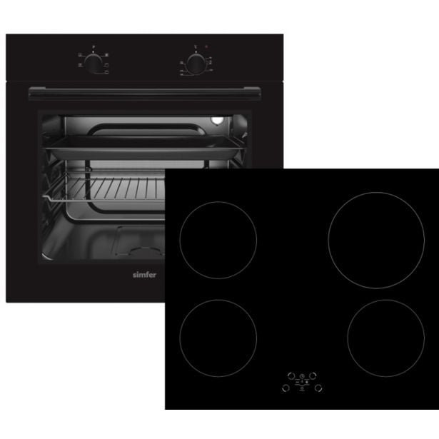 Vgradni kuhinjski set Simfer BIOH 40B5B je sestavljen iz prostorne ventilatorske vgradne pečice in steklokeramične kuhalne plošče s štirimi kuhališči.