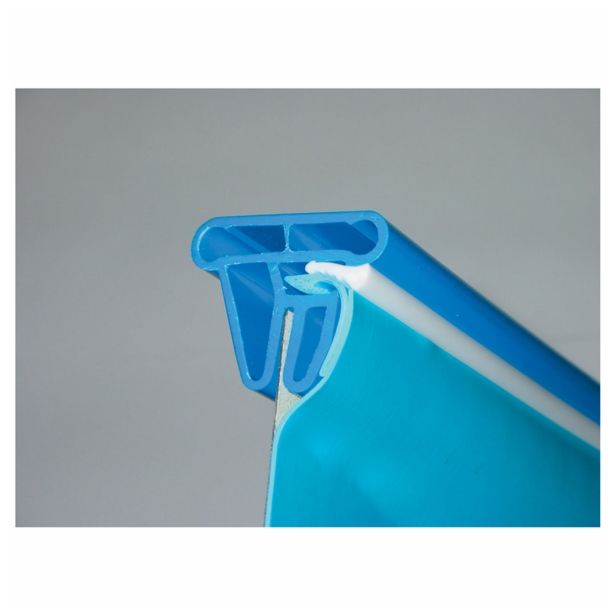Montažni vgradni bazen, ovalne oblike, mere 350x700x150 cm, jeklen plašč 0,8 mm, folija 0,6 mm-modra primeren samo za vgradnjo, folija 0,6 mm-modra, peščeni filter, vgradna lestev iz nerjavnega jekla.