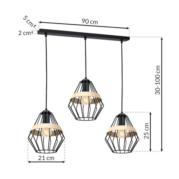 Milagro CLIFF MLP5525 – Trojna obesna svetilka z izrazitim dizajnom. Črna barva z lesenimi detajli, prilagodljiva višina in lustri iz črne žice zagotavljajo sodoben in eleganten videz. Popoln dodatek za izvirno osvetlitev prostora.