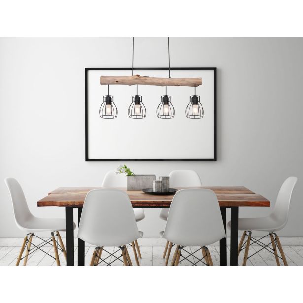 VISEČA SVETILKA MINA 4XE27 LES / ČRNA