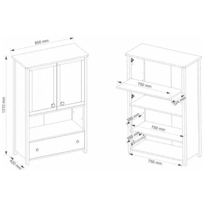 D: 85 cm x G:42 cm x V: 131 cm