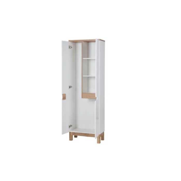 Visoka omara ALI 60D 2 je sodobna in elegantna omara za vašo kopalnico. Idealna je za shranjevanje čistil in pripomočkov za čiščenje. Narejena je iz kvalitetnih materialov in ima visoko odpornost na praske, tekočine in obrabo. Kopalniški element ima tudi mehko zapiranje.