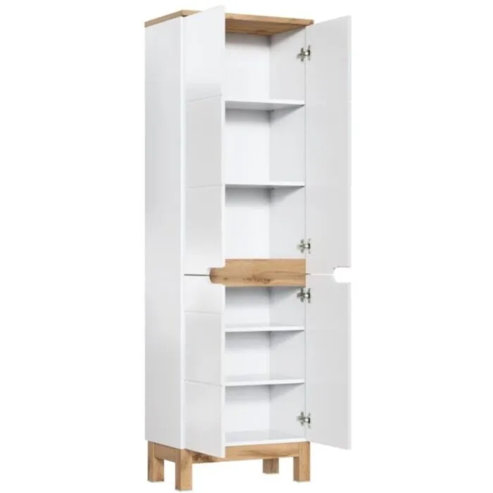 Visoka omara ALI 60D je sodobna in elegantna omara za vašo kopalnico. Narejena je iz kvalitetnih materialov in ima visoko odpornost na praske, tekočine in obrabo. Ima veliko prostora za shranjevanje vaših stvari. Kopalniški element ima tudi mehko zapiranje.