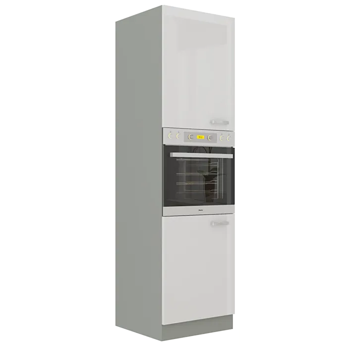 Visoka omara ELITE 60D 5 je sestavljena iz fronte iz MDF plošče, debeline 16 mm, robovi so iz ABS 1 mm. Korpus je narejen iz laminirane plošče, debeline 16 mm, robovi so iz melamina. Kuhinjski element je na voljo v štirih barvah visokega sijaja. V komentarju dopišete, katero barvno kombinacijo želite. Kuhinjski elementi imajo sistem mehkega zapiranja.