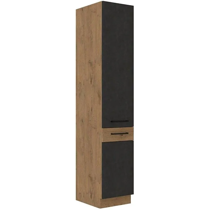 Visoka omara PARIZ 40D je sestavljena iz fronte iz MDF plošče, debeline 16 mm, robovi so iz ABS 1 mm, ročaji so iz plastike v sivi barvi. Korpus je narejen iz laminirane plošče, debeline 16 mm, robovi so iz melamina. Kuhinjski element je na voljo v barvi hrasta z matero in ima mehko zapiranje.