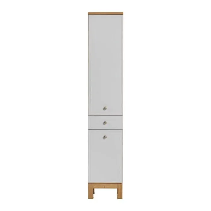 Visoka omara SAMSEA 35D je eleganten kos pohištva za vašo kopalnico v beli mat in hrastovi barvi. Narejena je iz kvalitetnih materialov in ima visoko odpornost na praske, tekočine in obrabo.