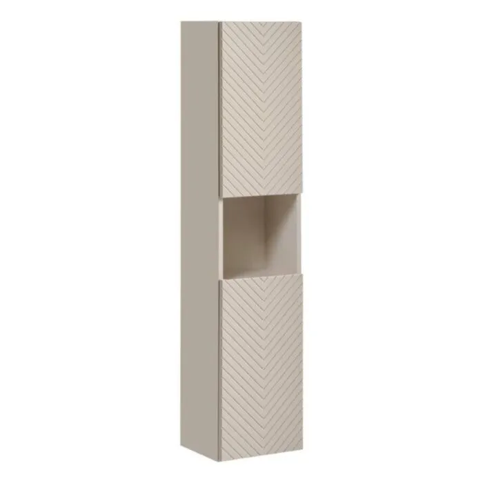 Kopalniški blok VIVERE je možno naročiti v kompletu, ali pa po posameznih elementih po vaši izbiri. Visoka omara VIVERE 30 je modernega dizajna. V kašmir barvei daje eleganten videz. Izdelana je iz laminirane ter MDF plošče. Vsebuje mehko zapiranje.