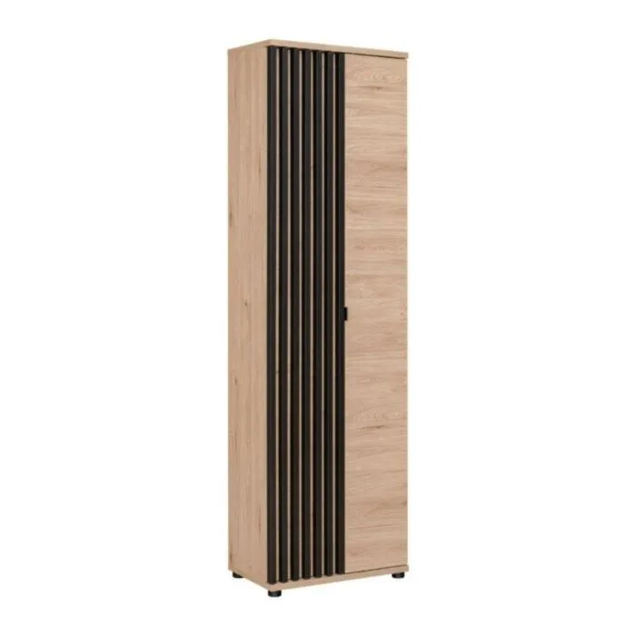 Visoka omara za čevlje BENO je elegantna ter atraktivna. Moderen dizajn z dodatkom lamel v črni mat barvi se bo podal v vsak prostor. Omara vsebuje v notranjosti police.