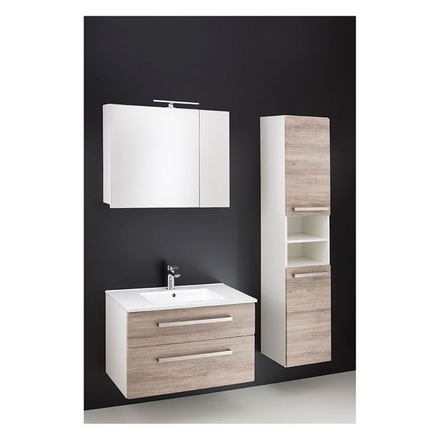Omarica je izdelana iz MDF materiala, prevlečenega s PVC folijo. Vratca se mehko zapirajo in imajo kromirane ročaje.