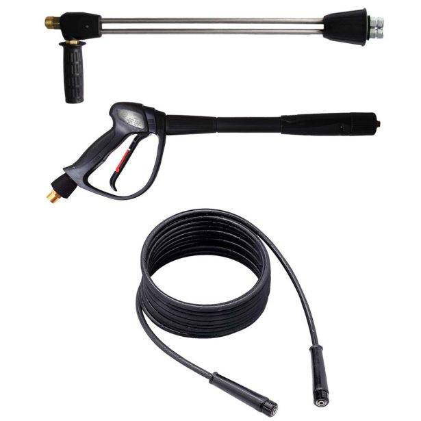 – Dvojna visokotlačna cev iz nerjavečega jekla (70 cm) z dvema jeklenima šobama