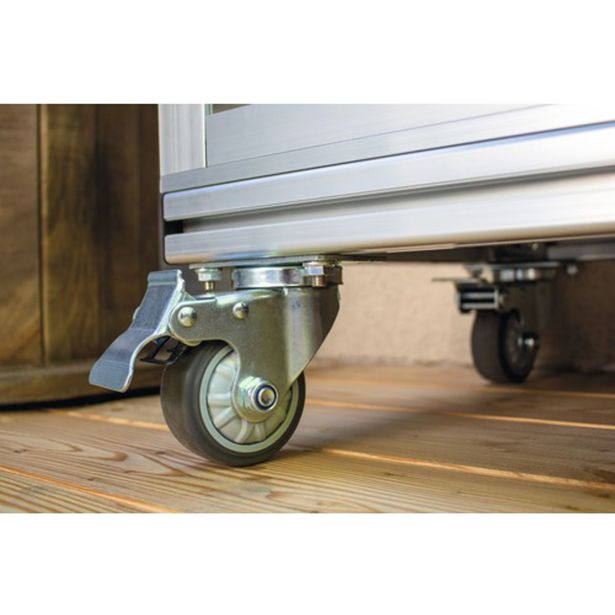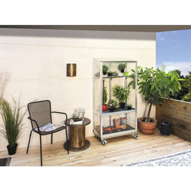 Balkonski rastlinjak s koleščki, tlemi in polico