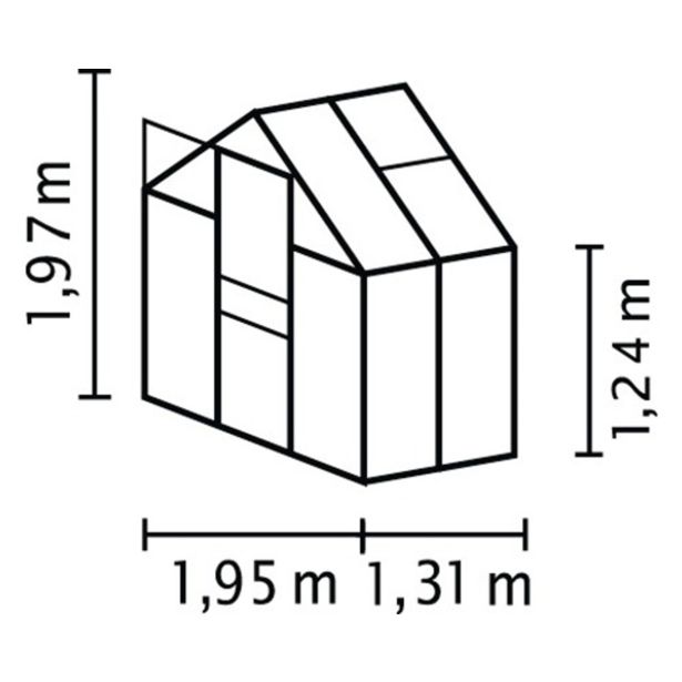 Komplet rastlinjaka iz prašno lakiranih aluminijastih profilov in zasteklitve iz približno 6 mm debelih, UV-stabiliziranih dvostenskih plošč (PC).
