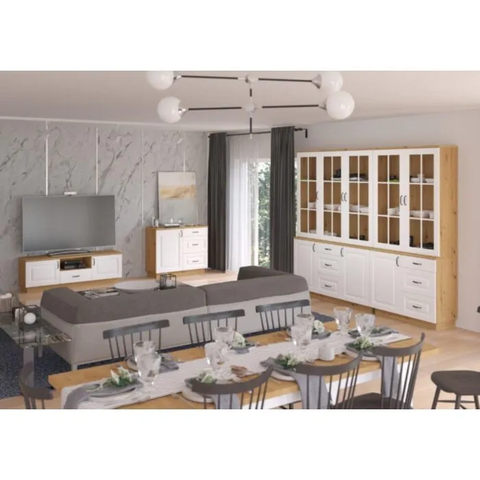 Vitrina FAJA 3  je eleganten kos pohištva,ki popestri vaš prostor s svojo eleganco in prefinjenostjo. Primerna je za vsak prostor, tako za dnevno sobo, jedilnico ali pa kakšen drugi prostor v katerem potrebujete več prostora za organizirano shranjevanje.