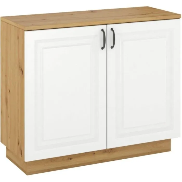 – Laminirana plošča / PVC robovi / kovinski ročaji / hrbtna stena iz HDF plošče / steklo