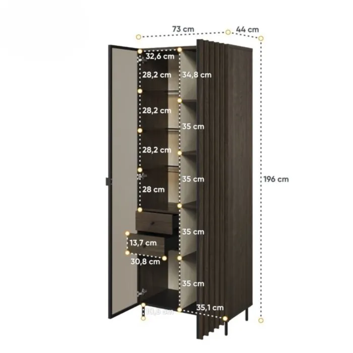 Š: 73 cm x D: 44 cm x V: 196 cm