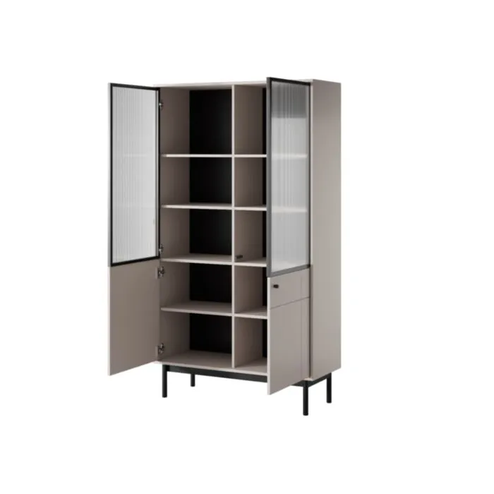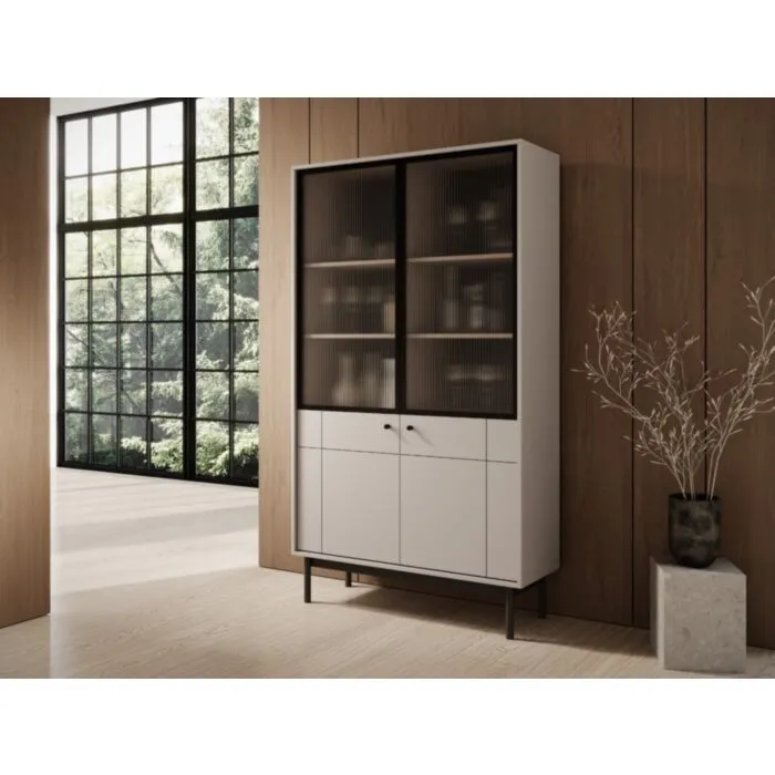 Vitrina JAPONI kašmir je elegantna in preprosta. Odlično se poda v vsak dnevni prostor. Narejena je iz visokokakovostnih materialov, kar zagotavlja trdnost in dolgo življenjsko dobo. Ima ABS robove, ki zagotavljajo večjo odpornost proti udarcem, vlagi in obrabi ter podaljšujejo njeno življenjsko dobo. ABS robovi ne le ščitijo pred poškodbami, ampak poskrbijo tudi za lepši in elegantnejši videz pohištva. Zaradi svoje oblike in visokokakovostnih materialov je trpežna in vzdržljiva. Odporna je na praske, udarce in obrabo. Je enostavna za vzdrževanje, saj je površina preprosta za čiščenje in negovanje. Estetsko se poda v vsak prostor ter ima dobro odpornost na madeže in vlago.