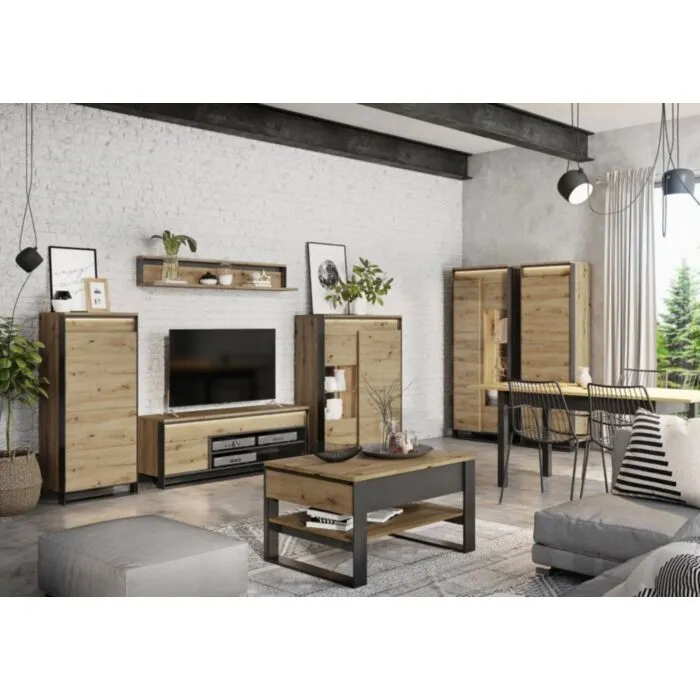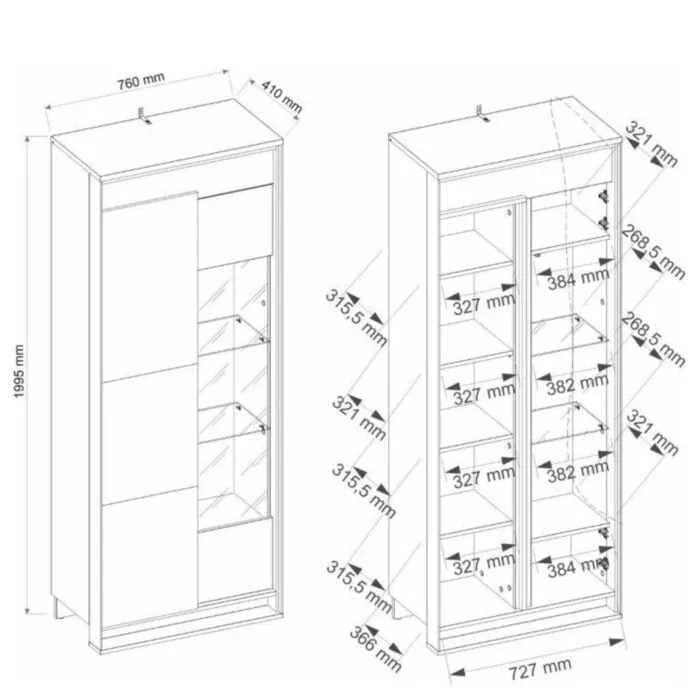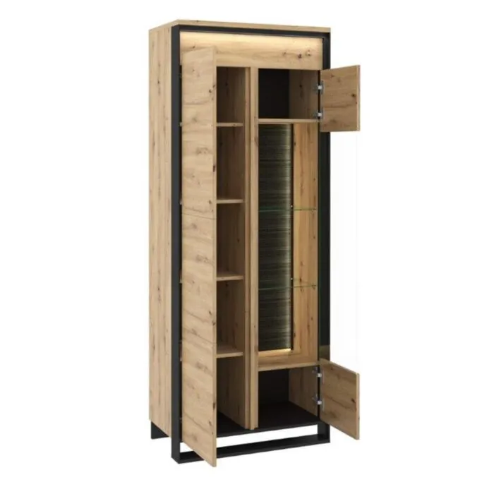 Vitrina KVIN vas bo navdušila s svojim modernim izgledom in svojo praktično uporabo. Na levem delu se nahaja zaprta knjižna polica s policami. Desna stran je razdeljena na cono z zasteklitvijo in del vrati s zaprtim prostom.
