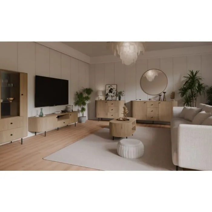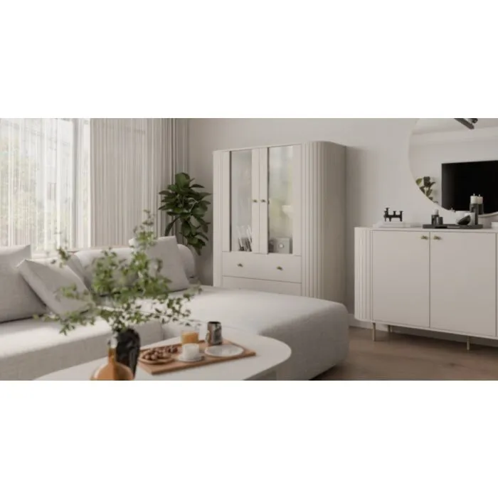 Vitrina OVARI 1 je zaradi svoje oblike in visokokakovostnih materialov trpežna in vzdržljiva. Odporna je na praske, udarce in obrabo. Je enostavna za vzdrževanje, saj je površina preprosta za čiščenje in negovanje. Estetsko se poda v vsak prostor ter ima dobro odpornost na madeže in vlago. Dobavljiva je v hrast ali bež barvi.